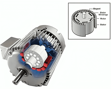 Permanent Magnet Synchronous Motors (PMSMs) are electric motors that utilize permanent magnets embedded in the rotor to generate a consistent magnetic field. Known for their high efficiency and superior performance, PMSMs are widely used in various applications, including industrial machinery, robotics, and electric vehicles.